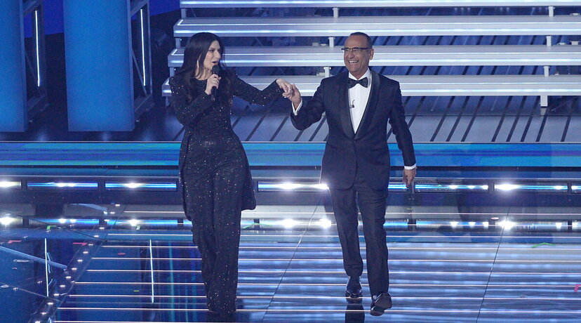 Sanremo, la conferenza stampa della terza serata con Carlo Conti e Irina Shayk