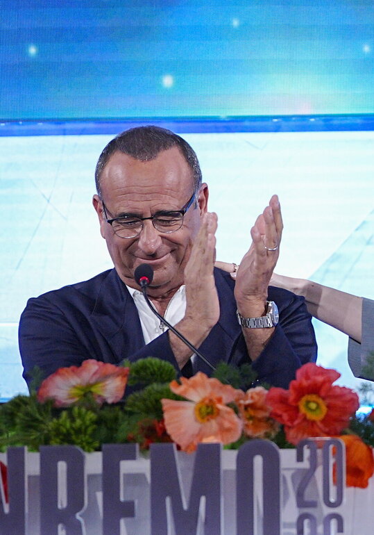 Carlo Conti pochi minuti prima, si è commossa ricordando il più grande conduttore della storia del