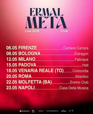 Il nuovo album di Ermal Meta uscirà a due anni circa dal suo ultimo disco “Buona fortuna” e sarà seguito da un tour nei club, in partenza il 6 maggio da Firenze, con cui il cantautore celebrerà anche i suoi 10 anni di carriera da solista. Alcuni biglietti per i concerti sono ancora disponibili.