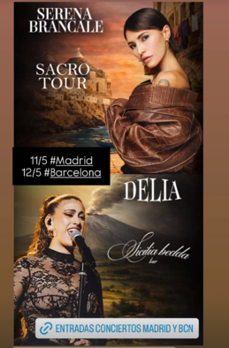 Serena Brancale porterà “Sacro” in giro per le librerie italiane e in tour in Europa e in Italia a partire dal 30 aprile. I concerti di Madrid e Barcellona dell’11 e del 12 maggio saranno aperti da Delia.